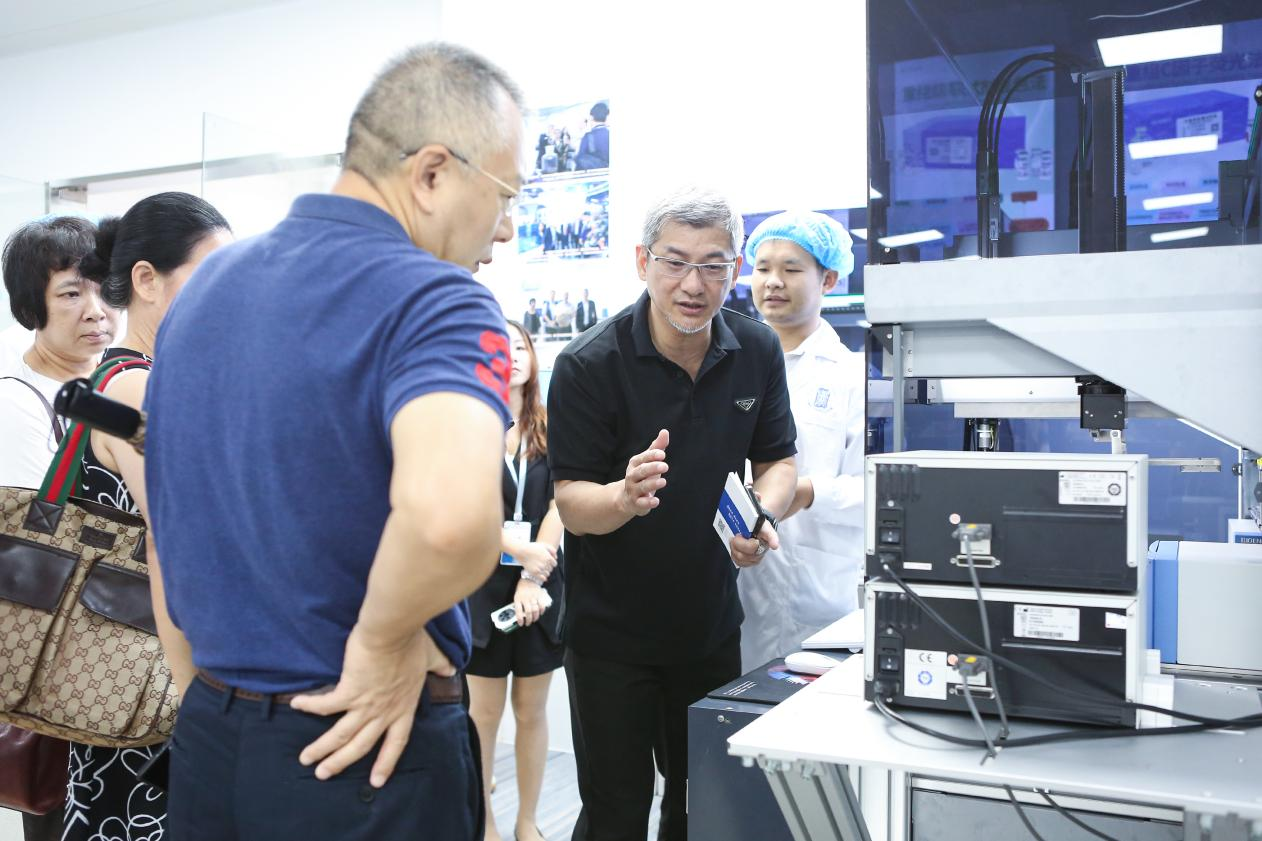 座談匯報后,中生藥協常務副會長兼秘書長胡文言、廈門市科技局處長莊如真、廈門市食藥檢院院長李玲玲、萬泰滄海董事長李世成一行參觀考察了我司全方法學“一條龍”內毒素檢測產品系列,我司董事長吳尚毅重點展示了微量動態顯色法鱟試劑盒、重組C因子熒光法試劑盒、重組級聯試劑顯色法試劑盒、單核細胞活化反應測定MAT法系列產品及BIOENDO模塊化智能全自動檢測機器人系統EndoMaster,我司可持續發展的內毒素檢測解決方案獲得各位領導的認可和好評。